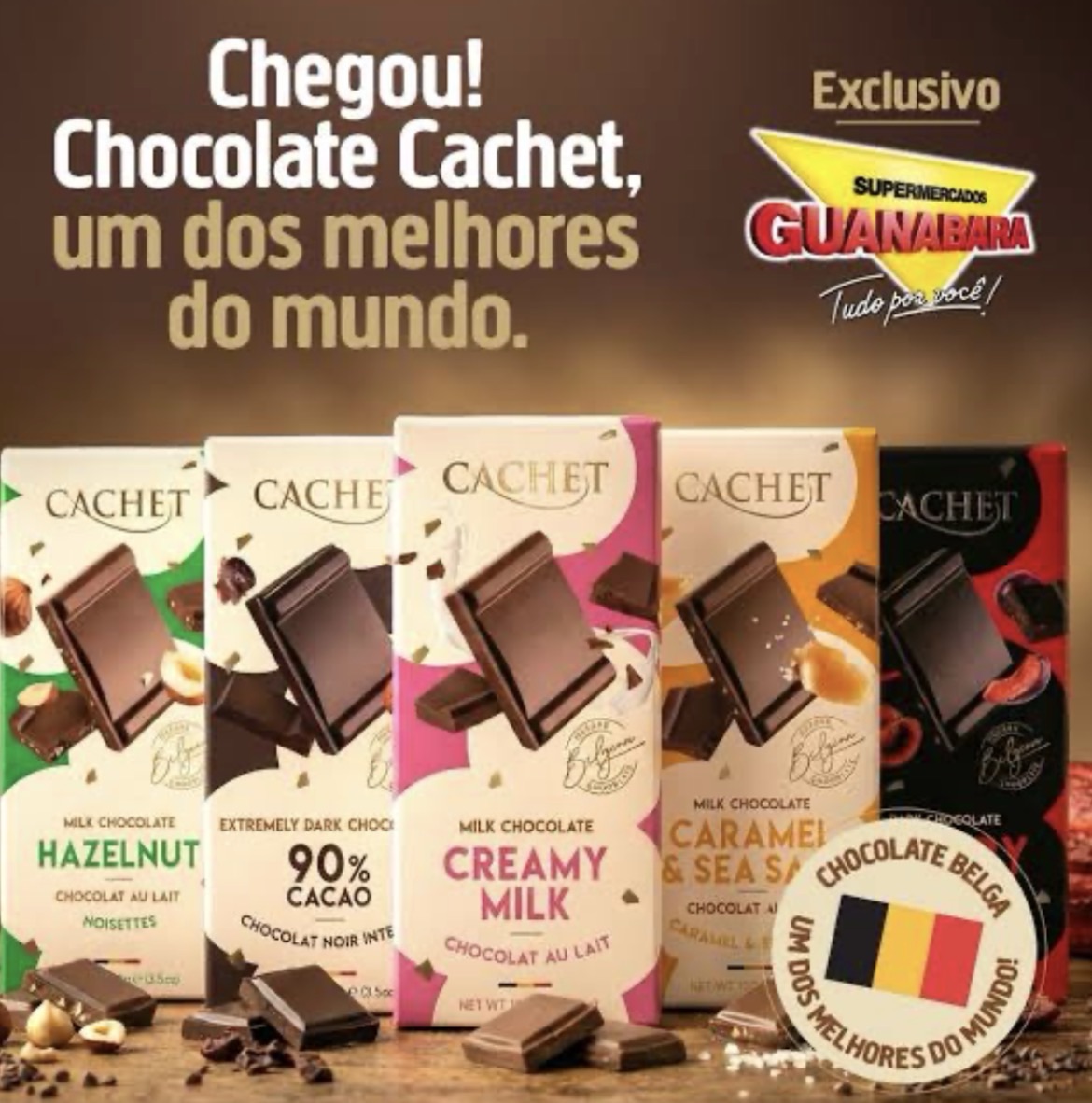Para a Páscoa, a rede trouxe com exclusividade no Rio de Janeiro a marca de chocolates Cachet, considerado um dos melhores do mundo. Foram oito contêineres trazidos ao país, somando mais de 100 toneladas do produto e consolidando a empresa como maior importadora da marca belga no Brasil. O momento reforça a proposta do Guanabara em oferecer produtos premium, mostrando que qualidade pode fazer parte do dia a dia.